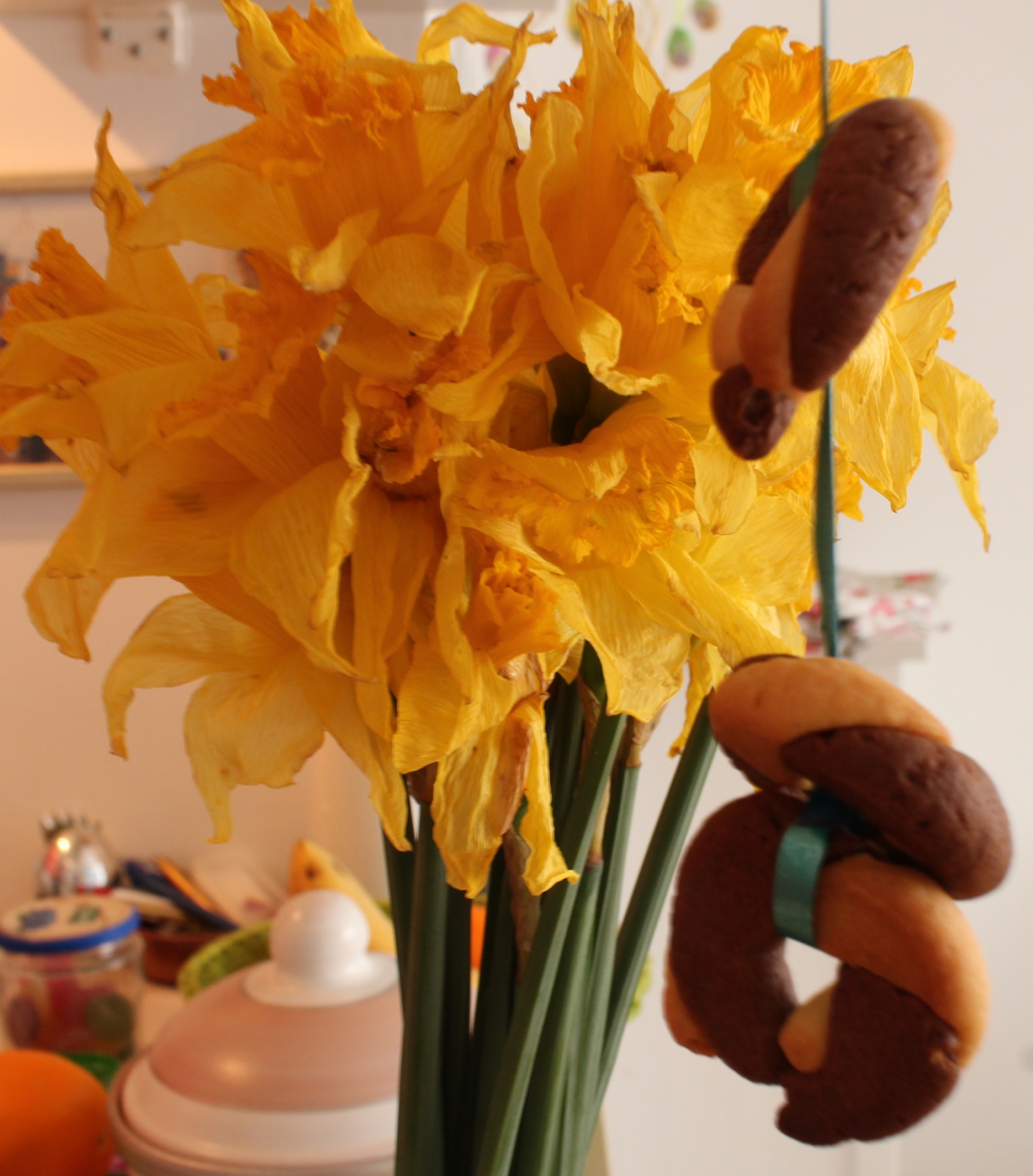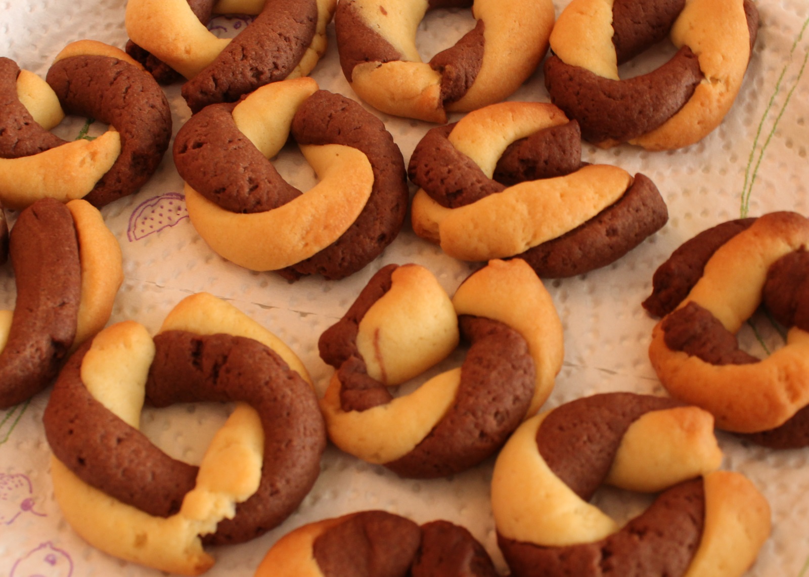 Bliži se Uskrs i zagrizla sam za fine keksiće, za koje sam recept pronašla u Spar časopisu Dobar tek. Dva recepta su mi bili favoriti, a s obzirom da moj muž i šogor više vole čokoladu nego limun, odlučila sam se za ove žuto-smeđe keksiće. Radila sam ih prema receptu u obliku vjenčića, ali i pomoću uskršnjih modlica koje imam.